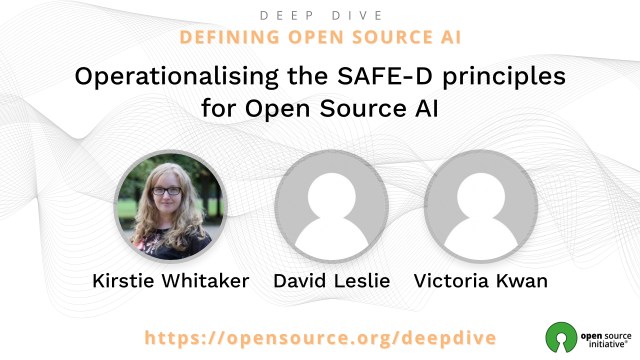 In this webinar hosted by the Open Source Initiative as a part of the “Deep Dive: Defining Open Source AI” series, Kirstie Whitaker, Professor David Leslie and Victoria Kwan of The Alan Turing Institute discuss the operationalization of safety principles in AI research and development within the context of open source practices. Leslie introduces the safety principles of safety, accountability, fairness, explainability, and data stewardship (SAFE-D) and explain their significance in ensuring responsible and trustworthy AI development. Kwan then demonstrates how these principles are integrated into the Turing’s Research Ethics (TREx) institutional review process, emphasizing stakeholder engagement, accountability, fairness, and more. Whitaker concludes by highlighting the alignment of open source practices with the safety principles, emphasizing the importance of transparency, accountability, diversity, and data stewardship within the open source AI community, while advocating for a more inclusive, accountable, and interconnected ecosystem.